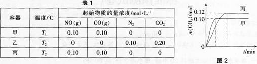 问题 一定温度下,在三个容积均为2.0 L的恒容密闭容器中发生反应: 各容器中起始物质的量浓度与反应温度如表1所示,反应过程中甲、丙容器中 C02的物质的量随时间变化关系如图2所示: 下列说法正确的是( )。