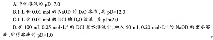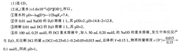 解析 (3)产生错误的原因:选A选项的同学没有理解pH、pD的意义,将常温下中性溶液的pH与pD混淆;选B选项的同学没有注意到重水的离子积与水的不同。
