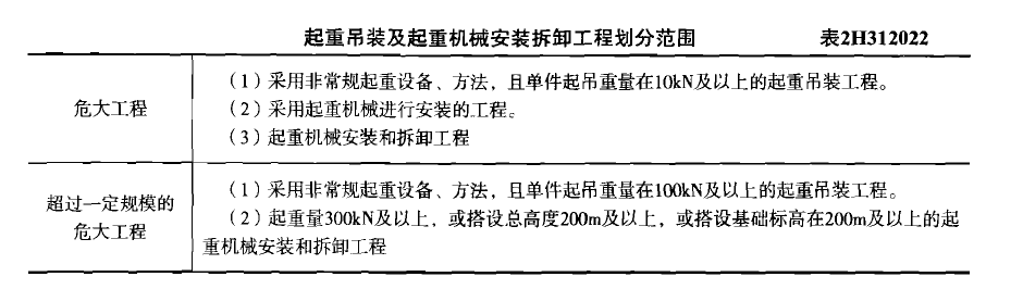 解析 新教材P29页 表2H312022,应提交论证报告的工程包括:采用非常规起重设备、方法,且单件起吊重量在100kN及以上的起重吊装工程。起重量300kN及以上的起重设备安装工程;高度200m及以上内爬起重设备的拆除工程。