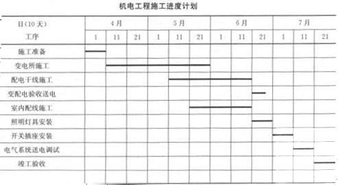 问题 A安装公司承包某大楼的建筑电气工程施工。工程内容有地下变电所、配电干线、室内配线、照明系统。合同约定:主要设备(三相电力变压器、成套配电柜)由业主采购,其他设备及材料由A安装公司采购。大楼的一次结构已完工,大楼的二次结构、装饰工程由B建筑公司承包施工。 A安装公司项目部进场后,依据B建筑公司提供的二次结构、装饰工程的施工进度计划等资料,编制了建筑电气工程的施工方案、施工进度计划(见下表)。在施工方案中合理安排了变压器、成套配电柜、插接式母线槽的施工程序。在制定施工进度计划时,要求设备材料采购与施工进度合理搭接。 A安装公司积极与B建筑公司协调,使电气工程的施工符合装饰工程的施工进度计划,A安装公司和B建筑公司共同实施对大楼的建筑装饰、电气工程等工程的竣工验收,使机电工程按合同要求完工。 问题: 1.A公司项目部在编制施工进度计划时应采用哪种表示方式?有什么优点? 2.三相电力变压器最迟到货时间是哪天?安装工序主要有哪些? 3.成套配电柜最迟到货时间是哪天?安装工序主要有哪几项? 4.施工进度计划的调整内容有哪些?