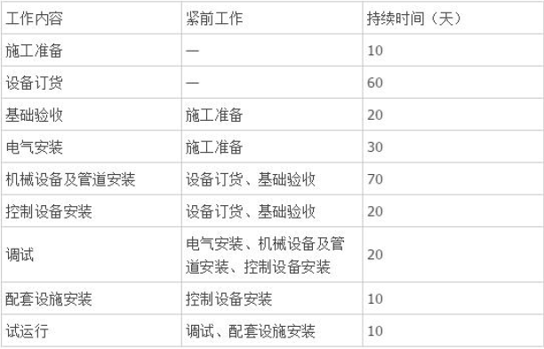 问题 【2016 年案例】背景资料某制氧站经过招投标由具有安装资质的公司承担全部机电安装工程和主要机械设备的采购。安装公司进场后按合同工期,工作内容,设备交货时,逻辑关系及工作持续时间(见表1,)编制了施工进度计划。 表1 制氧站安装公司工作内容逻辑关系及持续时间表: 在计划实施过程中,电气安装滞后10 天,调试滞后3 天。 问题: 1.根据表1 计算总工期需多少天?电气安装滞后及调试滞后是否影响总工期?并分别说明理由。