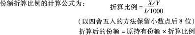 解析 假设某ETF基金管理人确定了基金份额折算日(T日)。T日收市后,基金管理人计算当日的基金资产净值X和基金份额总额Y,T日标的指数收盘值为I,若以标的指数的1‰作为基金份额净值进行基金份额的折算,则T日的目标基金份额净值为1/1000,基金