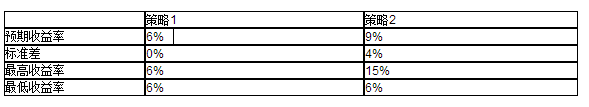 考虑下列两种投资策略: 策略____是有优势的策略,因为____。( )A、1;它有最高的回报/风险比率 B、2;它的收益率至少等于策略1,...