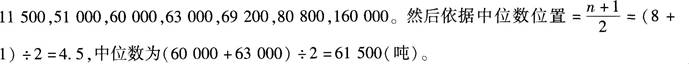 解析 本题考查中位数的应用。首先对题干中的数据进行排序为:10800,
