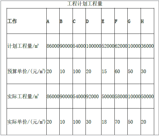问题 某水生态工程,合同工期20 个月,合同开工日期是2019 年1 月。施工单位进场后,编制了时标网络计划(下图)和工程计划工程量(下表),监理机构审核批准了该计划。假设每项工作施工期内施工强度相等。 施工期间,由于发包人原因,工作H 的开始时间比计划开始时间推迟1 个月,且由于地质等不良因素,导致工作H 的工程量增加,增加的工程量使该工作持续时间延长了1 个月。 【问题】 1.计算该工程每月拟完工程计划投资、累计拟完工程计划投资、每月已完工程计划投资、累计巳完工程计划投资、每月已完工程实际投资、累计已完工程实际投资,计算结果填人下表中。