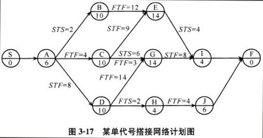 如图3-17所示单代号搭接网络计划的计算工期为()。A、18 B、20 C、22 D、24