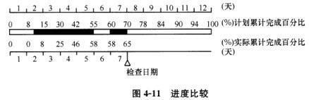 问题 某混凝土工程按计划12天完成,图4-11中标出了截至第7天末的实际施工时间,从图4-11中可以看出()。