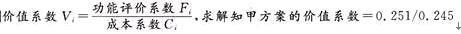 解析 =1.02,乙方案的价值系数=0.277/o.305=0.91,丙方案的价值系数=0.263/0.221=1.19,丁方案的价值系数=0.219/0.299=0.96。可见,丙方案的价值系数最高。
