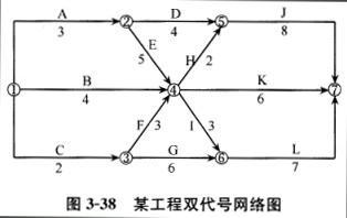 问题 某工程双代号网络计划如图3-38所示,其关键线路有()条。