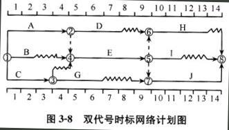 在图3-8所示双代号时标网络计划中,如果B、D、I三项工作因共用一台施工机械而必须依次施工,则该施工机械在现场的最小闲置时间为()周。(单位:周)A、...