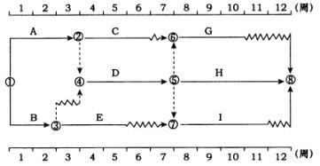 解析 本题考查的是双代号时标网络计划工作总时差和自由时差的判定。工作的总时差:(1)以终点节点为完成节点的工作,其总时差应等于计划工期与本工作最早完成时间之差;(2)其他工作的总时差等于其紧后工作的总时差加本工作与该紧后工作之间的时间间隔所得之和的最小值。据此计算,工作I的总时差为1周,工作H的总时差为0,工作G的总时差为2周,工作D的总时差为min{1,0,2)=0,工作E的总时差为2+1=3周,则工作B的总时差为min{1+0,0+3}=1周。