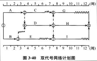 问题 在图3-40所示双代号时标网络计划中,如果A、E、G三项工作用一台施工机械且必须顺序施工,则该施工机械在现场最小闲置时间为()周。