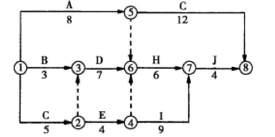 某工程双代号网络计划如下图所示,其关键线路有( )条。 A、 2 B、 3 C、 4 D、 5