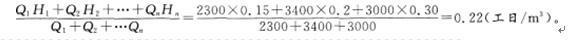 问题 某工作是由三个性质相同的分项工程合并而成的。 各分项工程的工程量和时间定额分别为Q1=2300m3,Q2=3400m3,Q3=3000m3;H1