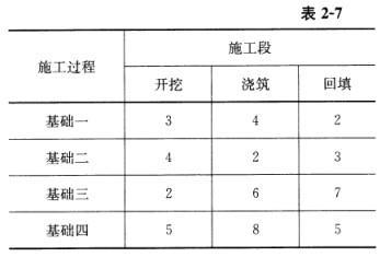 问题 某建筑物基础工程的施工过程、施工段划分和流水节拍(天)见表2-7。如果组织非节奏流水施工,则基础二浇筑完工时间为第()天。