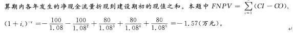 某建设项目,第 1~2 年每年年末投入建设资金 100 万元,第 3~5 年每年年末获得利润为 8 0 万元,已知行业基准收益率为 8%,则该项目的净...