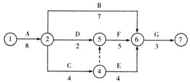 解析 工作的总时差等于该工作最迟完成时间与最早完成时间之差,或该工作最迟开始时间与最早开始时间之差。故工作D的总时差为2天。对于有紧后工作的工作,其自由时差等于本工作之紧后工作最早开始时间减本工作最早完成时间所得之差的最小值。故工作D的自由时差为2天。