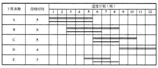 解析 截止到第8周末,工作A已完成,工作B实际拖延了2周,工作C在截止到第8周时进度正常工作。D没有开始工作,工作E的实际进度拖后了1周。