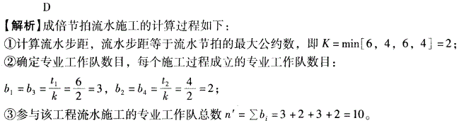 问题 某分部工程有4个施工过程,各分为3个施工段组织加快的成倍节拍流水施工。各施工过程在各施工段上的流水节拍分别为6、4、6、4天,则专业工作队数应为( )个。