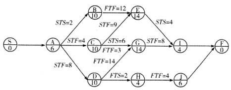 解析 单代号搭接网络计划可以利用相邻两项工作之间的时间间隔来判定关键线路。即从搭接网络计划的终点节点开始,逆着箭线方向依次找出相邻两项工作之间的时间间隔为零的线路就是关键线路。关键线路有两条,分别是D—G和A—B—E。