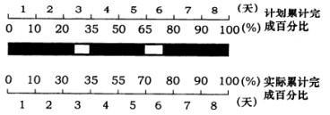 解析 本题考查的是非匀速进展横道图比较法。选项A,实际第4天完成20%,第5天完成15%,所以第4天至第5天实际进度不是匀速进展。选项B,第3天至第6天的计划进度每天都是15%,所以是匀速进展。选项C,施工过程中实际停工累计1天。选项D,第4天计划工作量15%,和实际工作量不相同。选项E,第8天结束时该工作实际累计完成100%,所以是按计划完成。