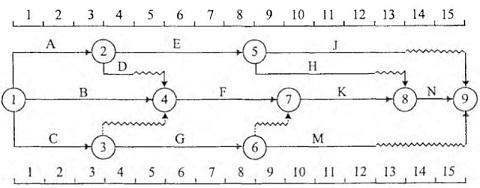 某工程双代号时标网络计划(时间单位:周)如下图所示,其中工作E的总时差和自由时差( )。 A、分别为1周和0周 B、均为1周 C、分别为2周和...