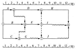 问题 某工程双代号时标网络计划如下图所示,其中工作C的总时差为()周。