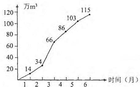 某土方工程月计划完成工程量累计曲线(单位:万m3)如下图所示,该工程1~4月份每月实际工程量分别为18、22、27和15万m3,则通过比较获得的正确结论是...