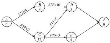 某分部工程单代号搭接网络计划如下图所示,节点中下方数字为该节点所代表工作的持续时间,关键工作是()A、工作C和工作D B、工作A和工作B C、...