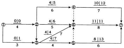 选项 A、工作1—3的自由时差为1 B、工作2—4的自由时差为1 C、工作2—6的总时差为2 D、工作3—6为关键工作 E、工作5—7的总时差为