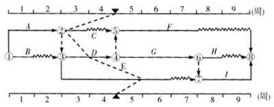 问题 某工程双代号时标网络计划执行到第4周末,时,检查其实际进度如下图前锋线所示,可以看出()