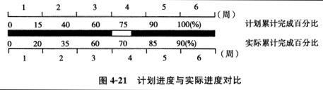 某工作的计划进度与实际进度如图4-21所示。图中表明该工作()。A、在第1周内实际进度拖后 B、到第2周末拖欠5%的任务量 C、在第3周内按计...