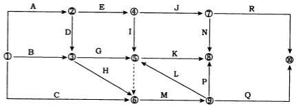 解析 本题考查的是双代号网络图的绘图规则。L工作箭头的节点编号数字小于箭尾节点编号的数字。⑤⑥⑨形成循环回路。⑧⑩有两个终点节点。