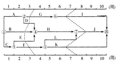 问题 某工程双代号时标网络计划执行到第3周末和第7周末时,检查其实际进度如下图前锋线所示,检查结果表明()