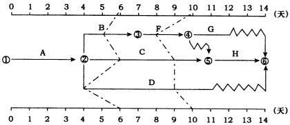 问题 某分部工程双代号时标网络计划执行到第6天和第10天结束时,检查其实际进度如下图前锋线所示,检查结果表明()。