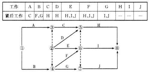 解析 图中有④②两个起点节点;虚工作⑥—⑤箭头的节点编号数字小于箭尾节点编号的数字;表格中工作G的紧后工作应该是I、J,而图上只表示出来工作G的紧后工作是J。