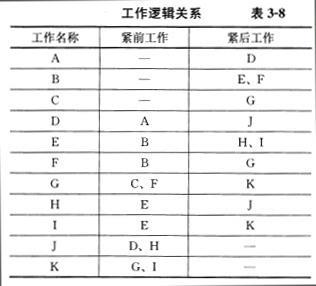 解析 本题考查的是网络计划的工作逻辑关系,该网络计划的工作逻辑关系如表3-8所示。