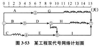 问题 某工程项目时标网络图如图3-53所示,则()。