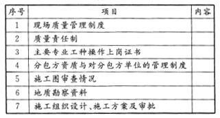 问题 根据施工质量检查的基本规定,施工单位提交给总监理工程师的《现场质量管理检查记录》中应包括的检查内容有()