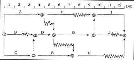 某工程双代号时标网络计划如下图所示:工作D的总时差和自由时差分别为()。A、1周和1周 B、1周和0周 C、均为0周 D、2周和1周