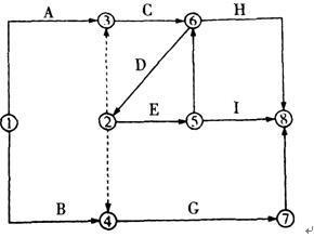 解析 网络图中要求有唯一的起点节点和终点节点,而图中①和②都是起点节点。②—③—⑥形成了回路。节点编号必须是箭头编号大于箭尾编号。