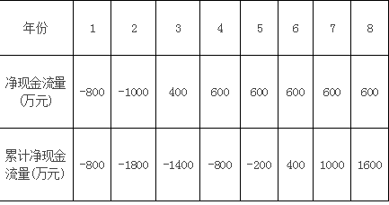 解析 Pt = T – 1 + 第(T-1)年的累计净现金流量的绝对值/第T年的净现金流量 = 6 – 1 + |-200|/600 = 5.33