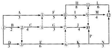 解析 网络图中应只有一个起点节点和一个终点节点,严禁在箭线上引入或引出箭线。本题中有节点⑩、(12)两个终点节点错误;从箭线上引出工作P、N错误。