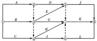 解析 网络图中,相对于某项工作而言,排在该工作之后的工作称为该工作的后续工作。由上图知工作B的后续工作有E、G、H、I、J、K、L。