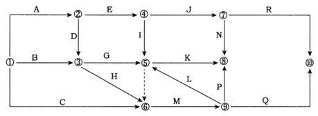 解析 本题考查的是双代号网络图的绘图规则。L工作箭头的节点编号数字小于箭尾节点编号的数字。⑤⑥⑨形成循环回路。有两个终点节点⑧⑩。