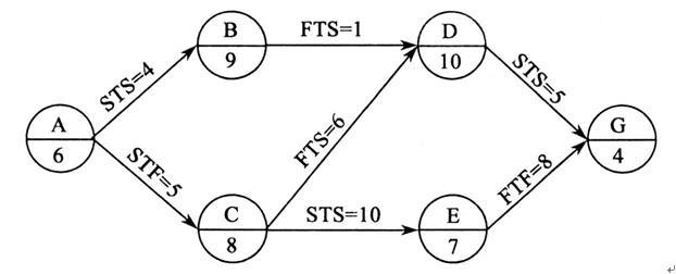 某工程单代号搭接网络计划如下图所示,节点中下方数字为该工作的持续时间,其中的关键工作有( )。 A.工作A B.工作B C.工作C ...