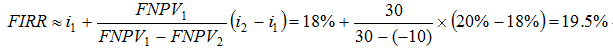 问题 某项目采用试差法计算财务内部收益率,求得i1=15%、i2=18%、i3=20%时所对应的净现值分别为150万元、30万元和-10万元,则该项目的财务内部收益率为( )。