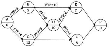 问题 某工程单代号搭接网络计划如下图所示,节点中下方数字为该工作的持续时间,其中的关键工作有()。