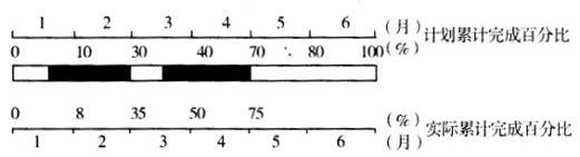 某分项工程的计划进度与4:月底检查的实际进度如图所示,从图中获得的正确信息有()A、第1月实际进度拖后2% B、第2月实际进度超前,当月超前5% ...