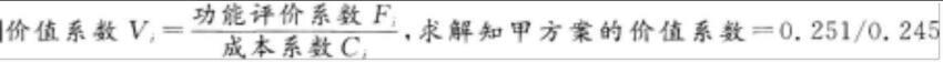 解析 =1.02,乙方案的价值系数=0.277/0.305=0.91,丙方案的价值系数=0.263/0. 221=1.19,丁方案的价值系数=0.219/0.299=0.96。可见, 丙方案的价值系数最高。